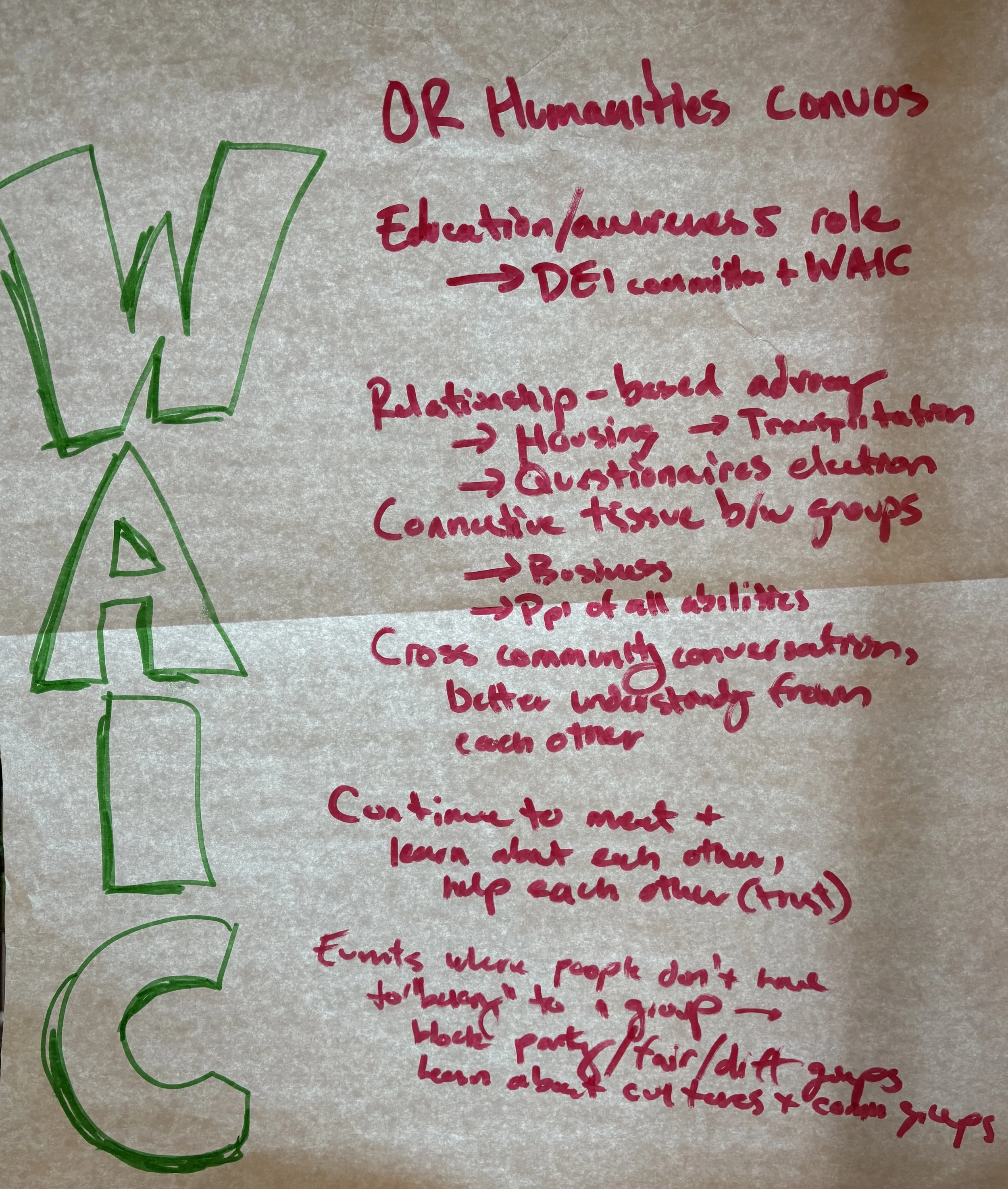We’re going to meet again soon to learn more about each other, keep the engagement and connections moving, and work toward identifying 3-5 people to fill WAIC organizational roles and how others can best support them. If you would like to join in, please reach out at connect@wilsonvillealliance.org!